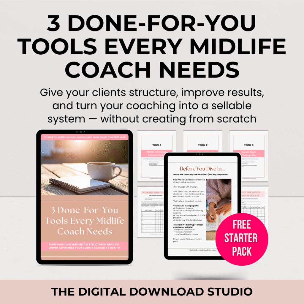 3 done-for-you tools that help midlife wellness coaches support their clients, improve results, and turn simple systems into sellable digital products