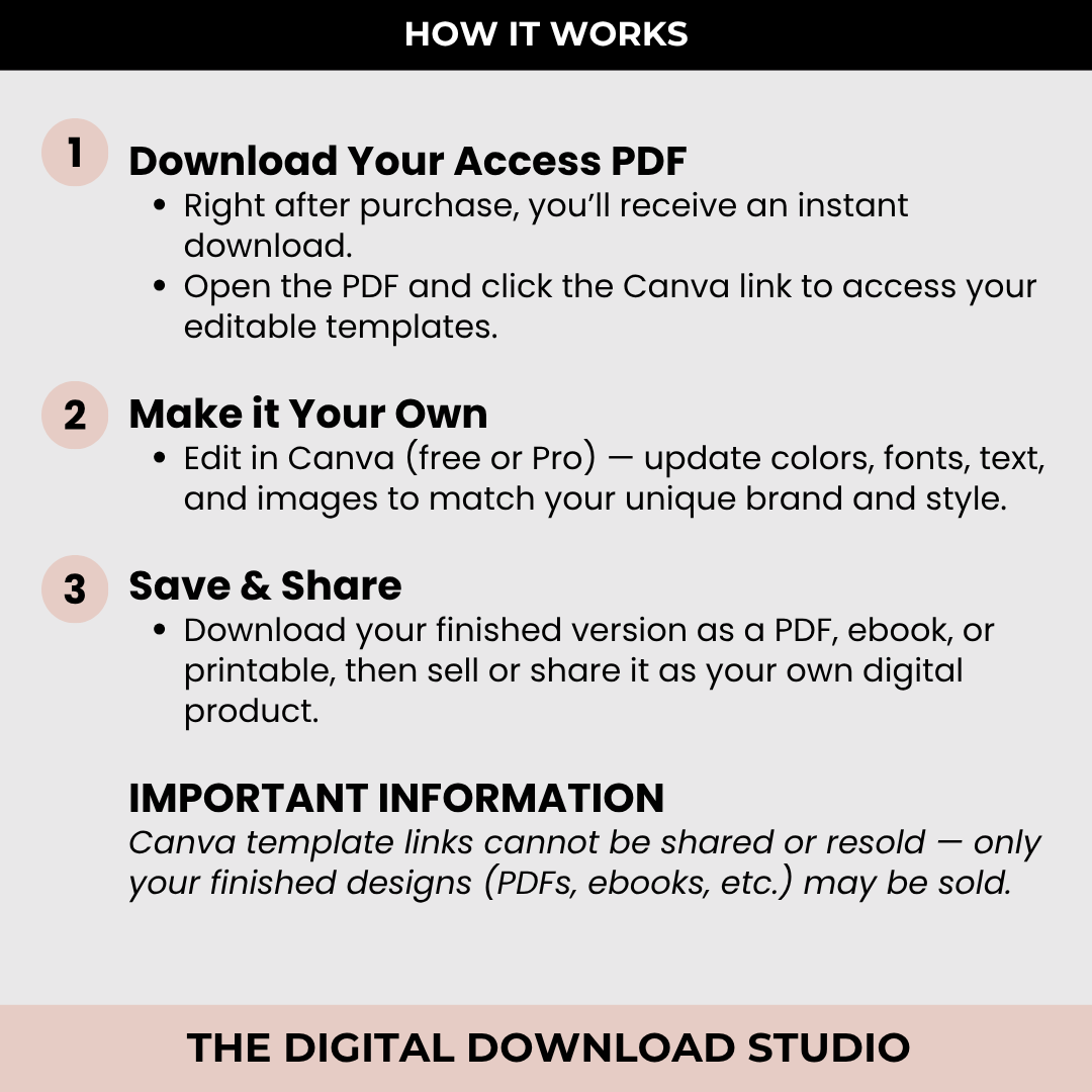 You’ll receive 1 PDF file that includes a Canva edit link, allowing you to customize and rebrand the content.