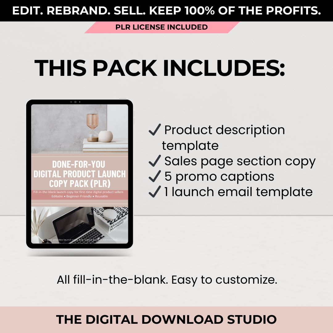 The Done-For-You Digital Product Launch Copy Pack (PLR) gives you simple, editable launch copy templates so you can stop guessing what to say — and start selling with clarity.