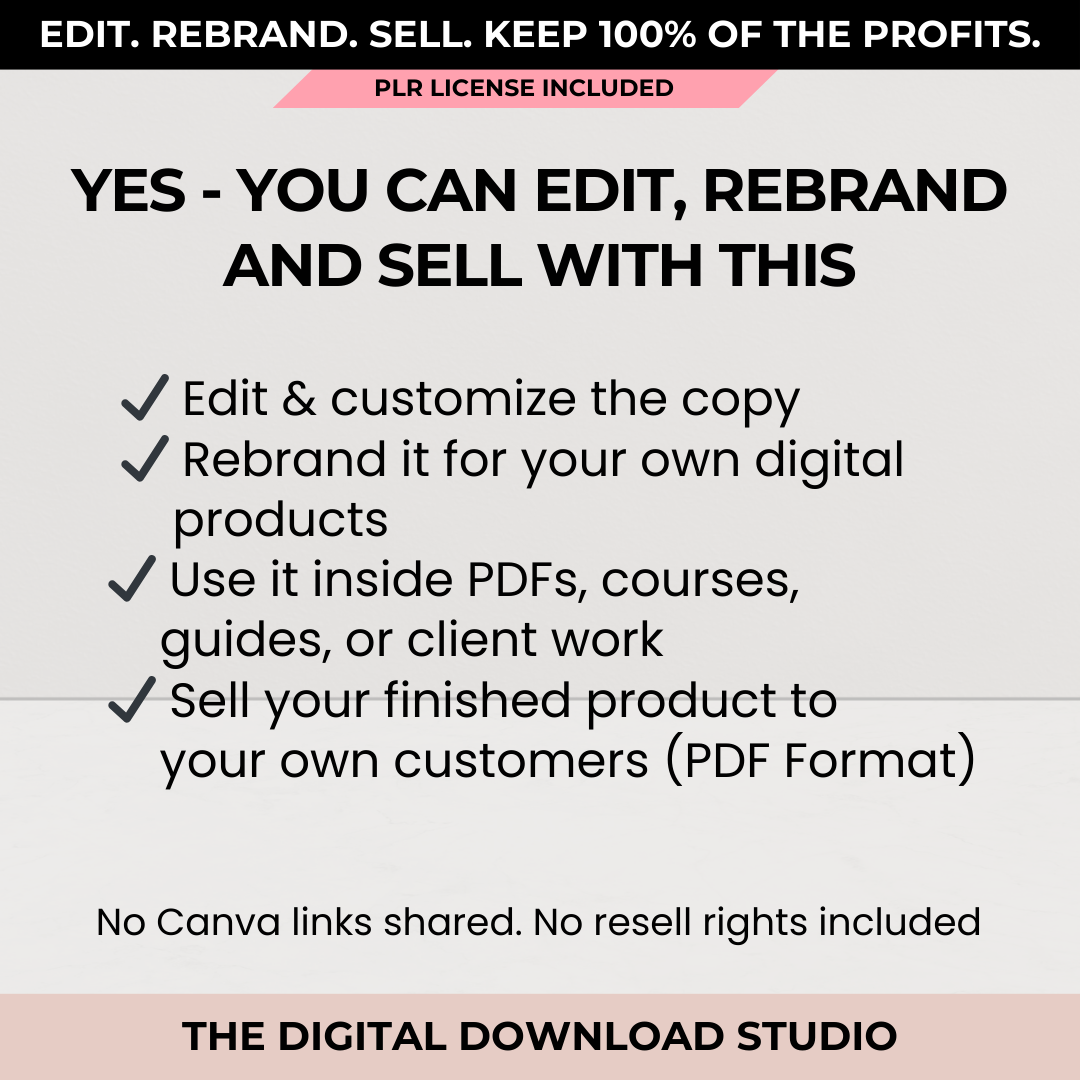 Yes. This product includes PLR-for-use, so you can edit, customize, and rebrand the content in Canva.